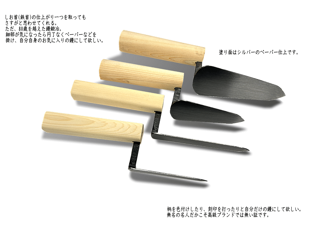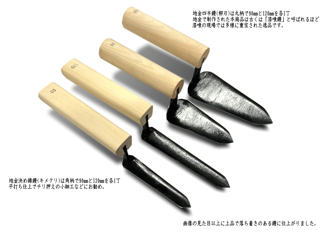 そこで今は引退している鏝鍛冶を説得し、キメクリそして柳刃鏝を各2サイズ、