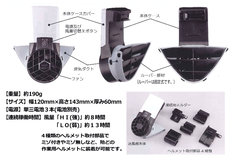 ヘルメット取付式送風機No7703[NO1538]|職人魂 匠の技を支えるプロ専用工具サイト